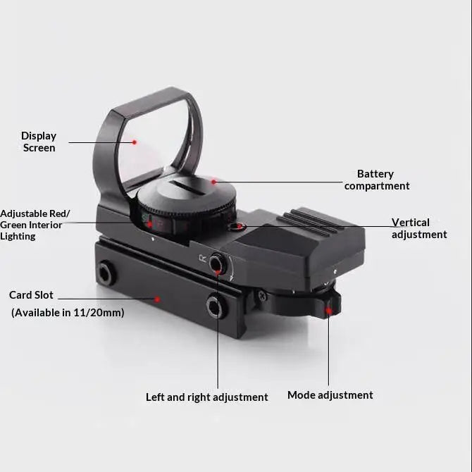Se você busca versatilidade absoluta e a capacidade de adaptar sua mira a diferentes distâncias e condições de luz, esta Mira Holográfica de Metal com 4 Retículos é o equipamento definitivo. Esqueça a limitação de um único ponto; aqui você tem o controle total da sua precisão.