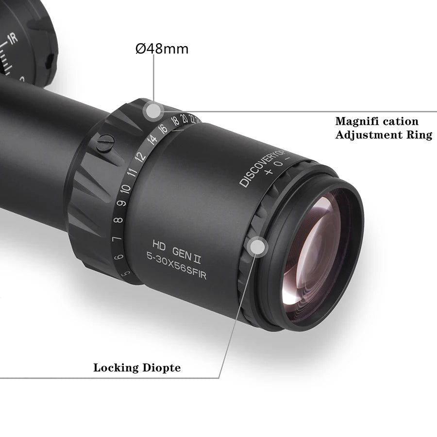 Para o atirador que não aceita nada menos que a perfeição balística, a Discovery HD GEN II 5-30x56SFIR representa o ápice da engenharia óptica moderna. Esta não é apenas uma mira telescópica; é um instrumento de precisão cirúrgica projetado para dominar distâncias extremas com clareza absoluta e confiabilidade mecânica inabalável.