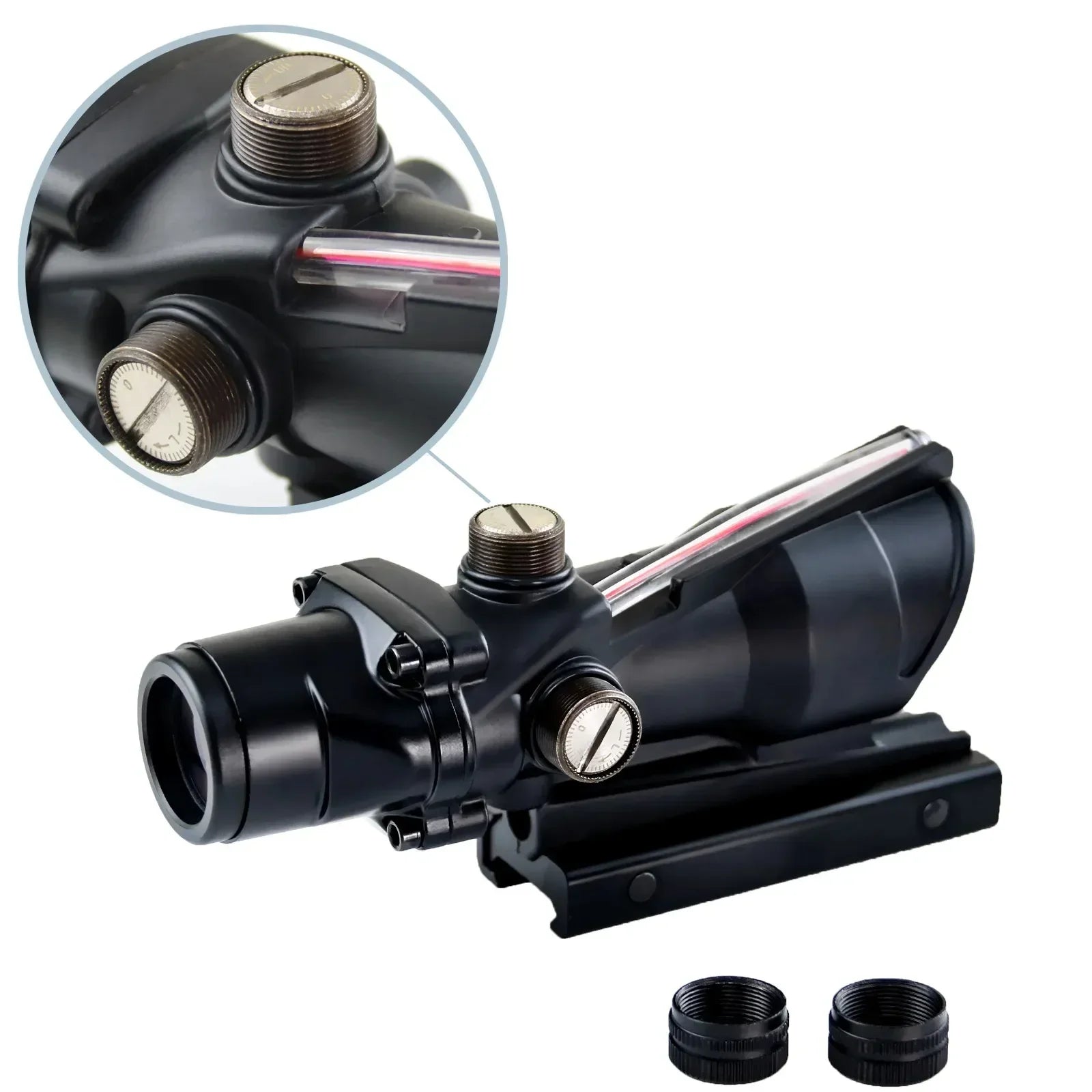 Mira teslescópica 4x32 com fibra óptica vermelha