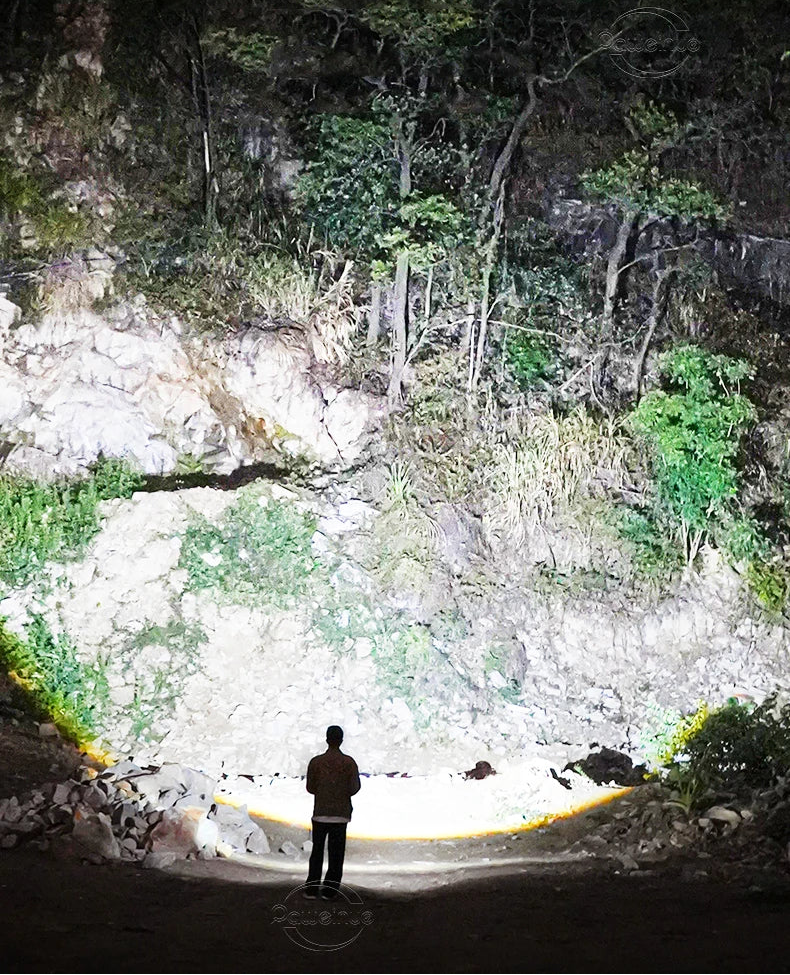 Zoom Telescópico e Foco Ajustável: Alterne entre um holofote de ampla abertura para iluminar todo o acampamento ou um feixe de luz ultra-focado para longas distâncias.
