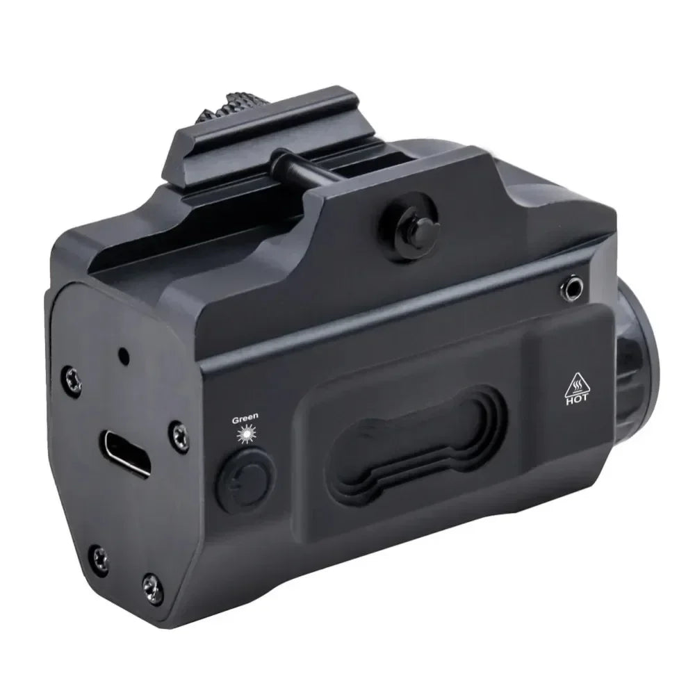 Lanterna tática com laser recarregável verde / vermelho com trilho picatinny