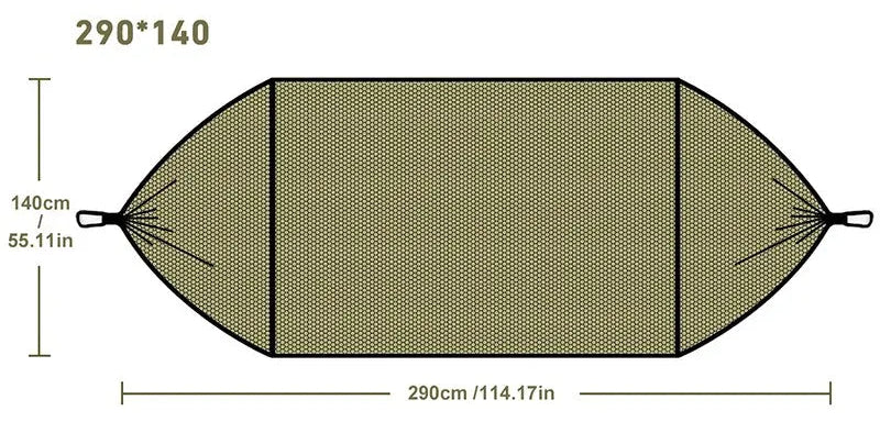 Malha de Mosquito Superior: A rede mosquiteira integrada tem 2.100 furos por polegada quadrada, garantindo que nenhum inseto perturbe seu descanso. O zíper de duas vias permite abertura fácil por dentro ou por fora.