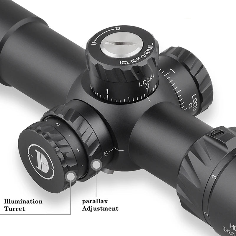 Mira telescópica DiscoveryOpt-HD 2-12x24S curta 30mm de diâmetro
