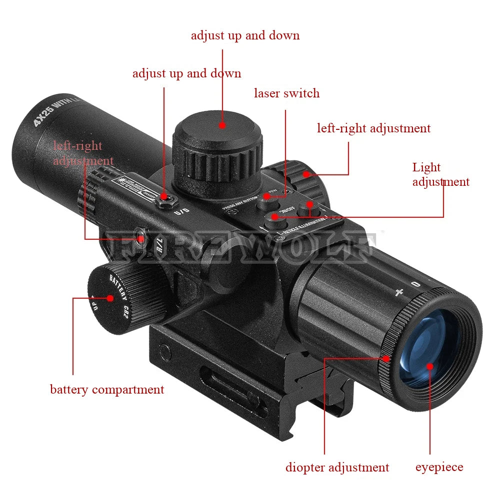 Mira telescópica Firewolf-M-4X25IR com Laser Vermelho